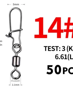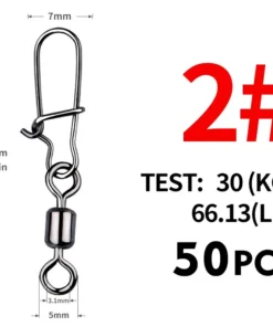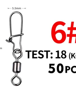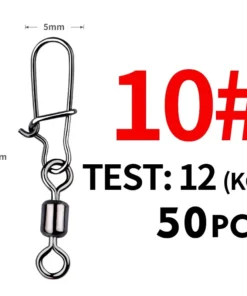 Chaque émerillon est équipé d’un snap rapide pour changer facilement de leurre, d’hameçon ou de bas de ligne. Ce kit complet de 50 pièces est idéal pour toutes vos sessions de pêche, que ce soit en rivière, lac ou mer.