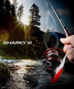 Son corps métallique renforcé assure robustesse et durabilité, tandis que son design étanche protège le mécanisme contre l’eau, le sable et la poussière. Parfait pour la pêche en eau douce ou en mer, le Sharky III allie puissance, précision et confort d’utilisation.