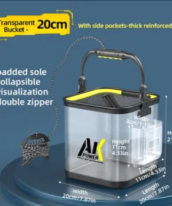 Léger et compact, ce seau multifonction est idéal pour le transport de poissons vivants, d’appâts ou d’eau, et peut également servir de récipient pour le nettoyage ou le camping. Sa poignée renforcée et sa sangle réglable permettent un transport confortable et sécurisé.